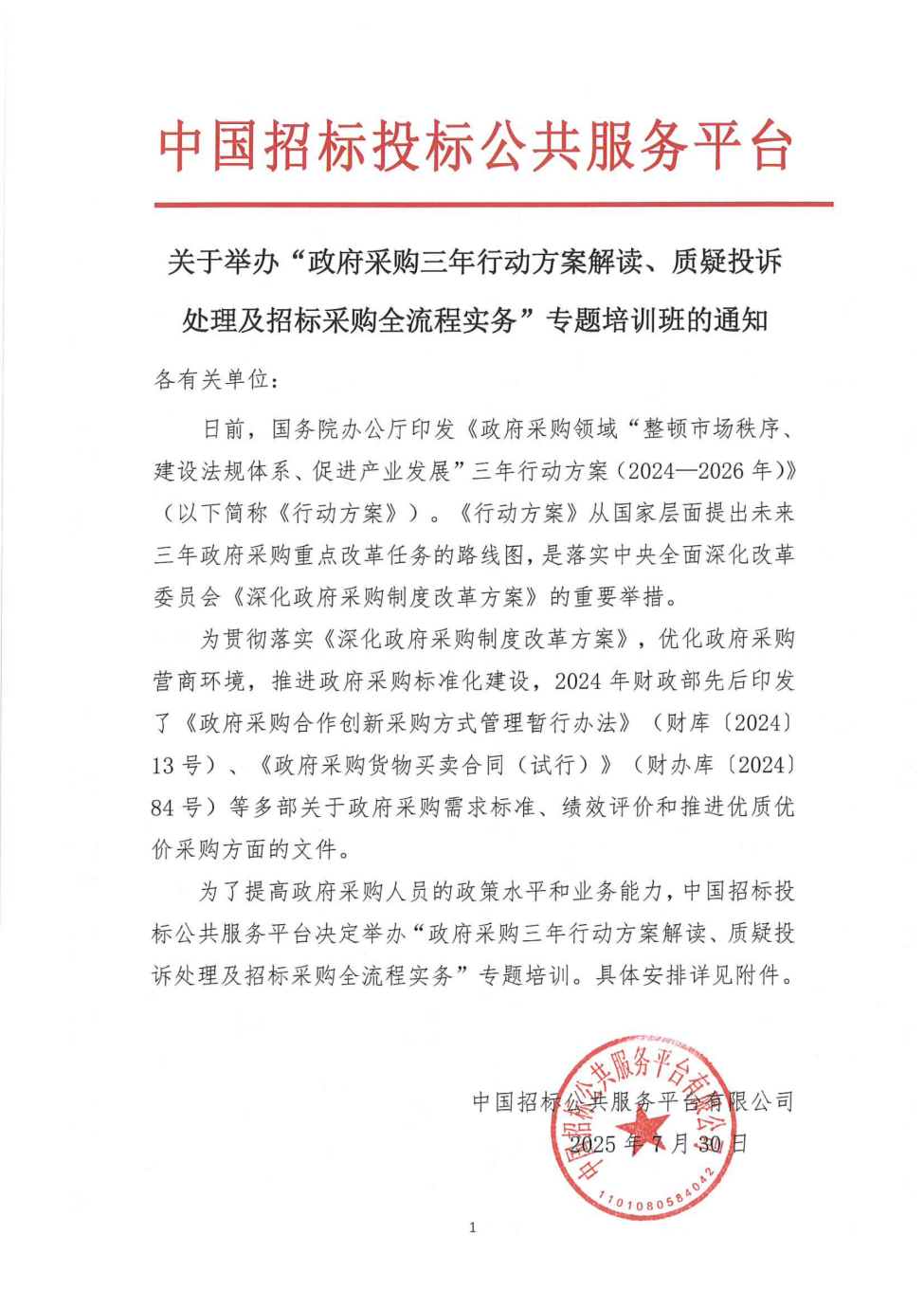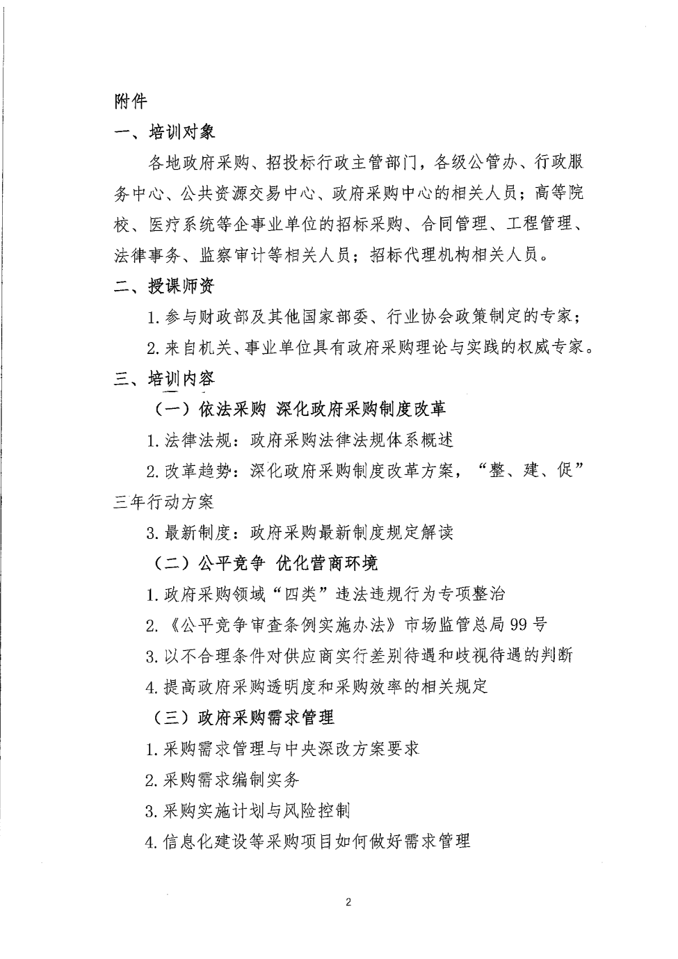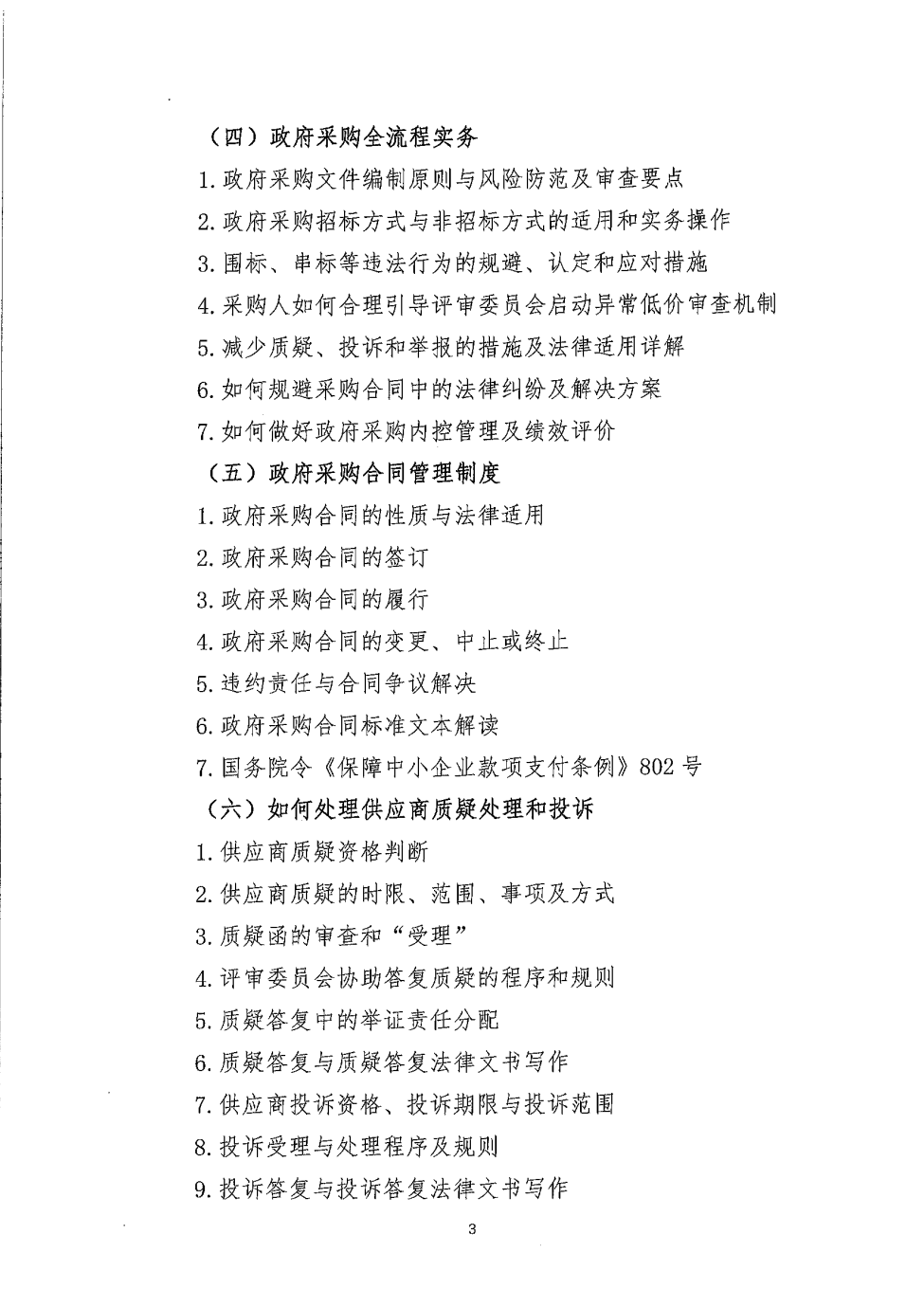 关于举办“政府采购三年行动方案解读、质疑投诉处理及招标 采购全流程实务专题培训班”的通知